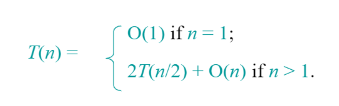 병합정렬을 재귀식으로 나타내면 위 식과 같다.
